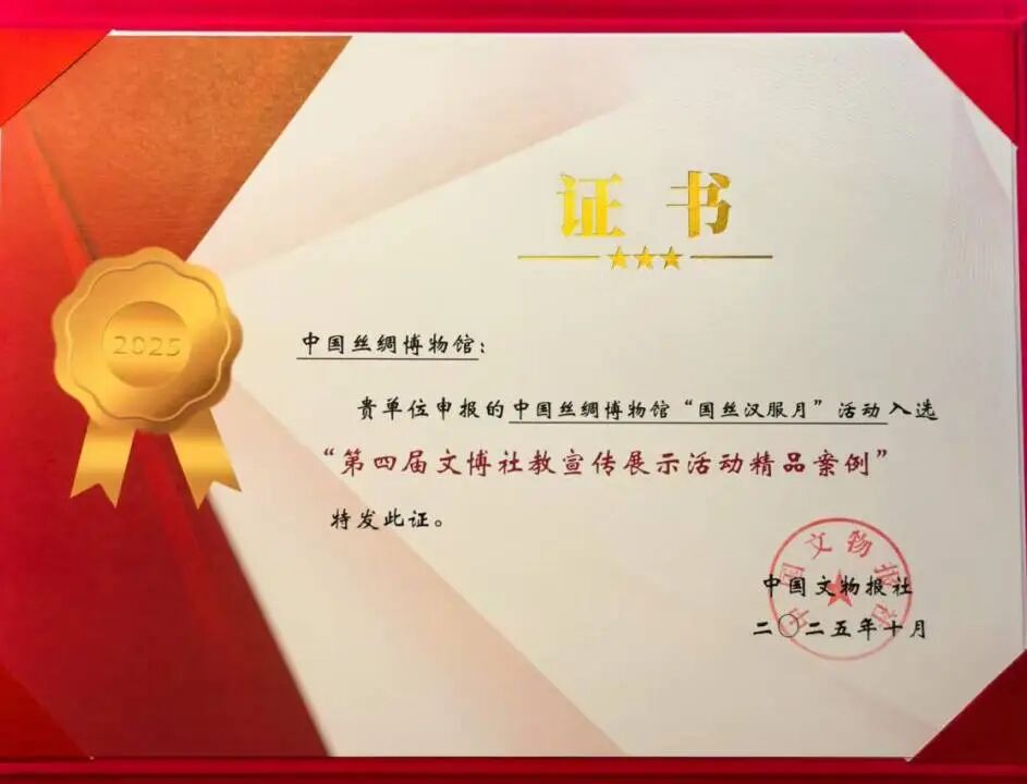 10月29日,由中華文物交流協(xié)會(huì)指導(dǎo)、中國(guó)文物報(bào)社主辦,殷墟博物館承辦的第四屆文博社教案例宣傳展示活動(dòng)終選會(huì)在河南安陽(yáng)舉辦。中國(guó)絲綢博物館“國(guó)絲漢服月”活動(dòng)榮獲“第四屆文博社教宣傳展示活動(dòng)精品案例”。