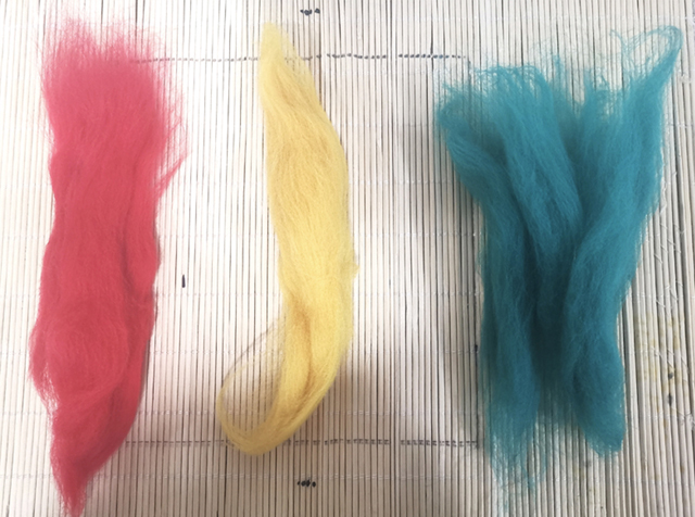 01 稱取三種不同顏色的羊毛各3克左右。
