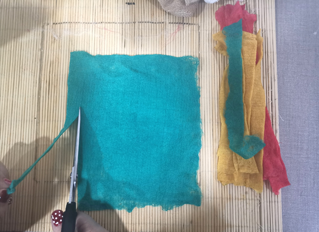 04 將半氈化片剪成寬度為2cm的長(zhǎng)條。