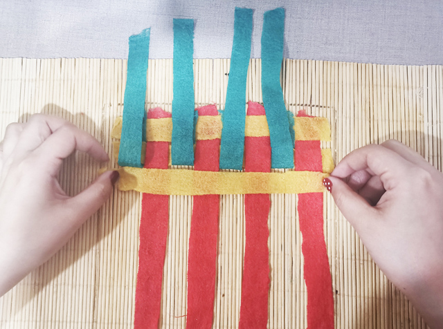 05 如圖交錯(cuò),編織半氈化片。