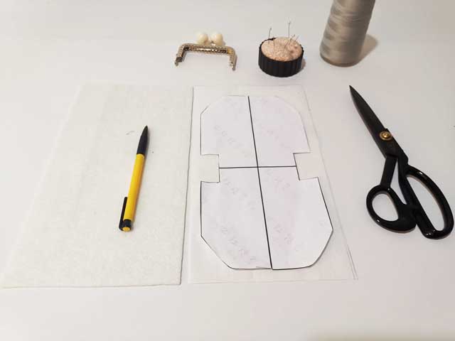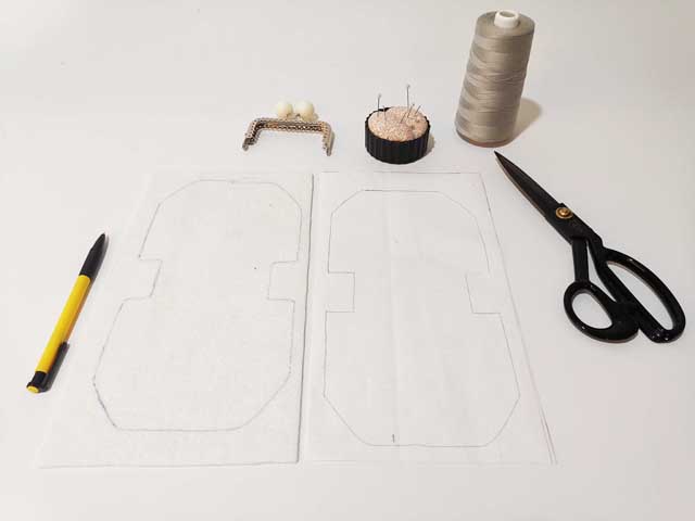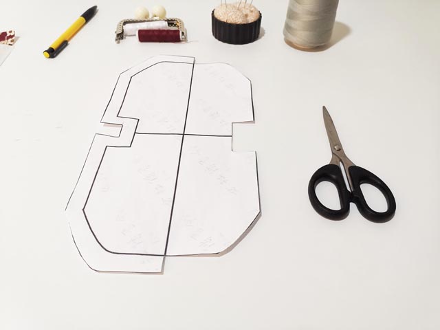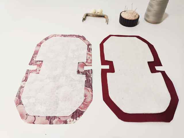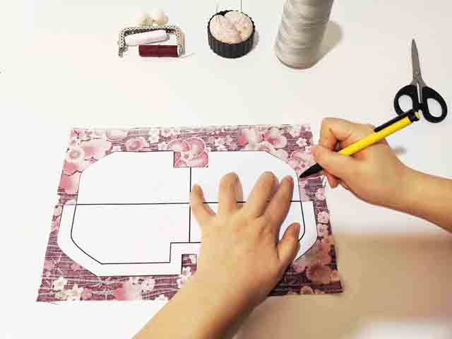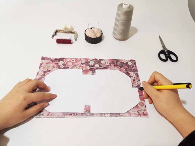 根據(jù)版型在表布和里布上畫出輪廓線,并剪掉多余的布料
