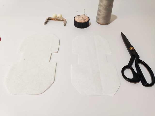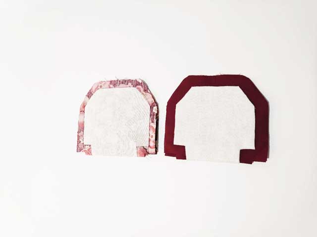 剪去版型的外輪廓縫份線,在鋪棉布襯上畫出版型,并剪去多余布料