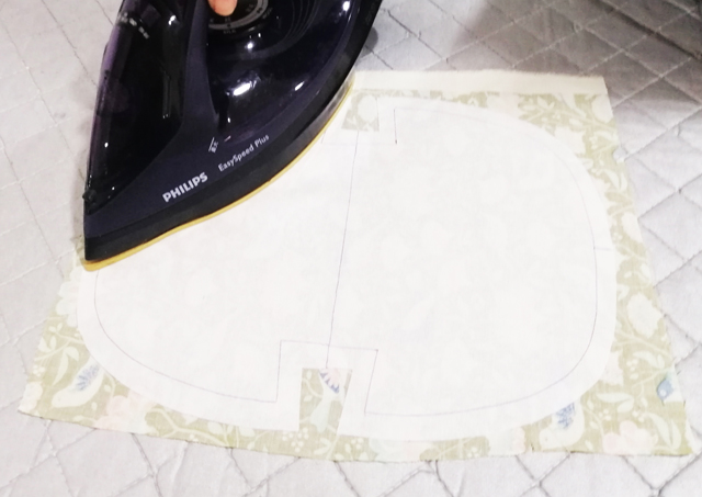 2 布襯燙在表布上,并剪去多余布料