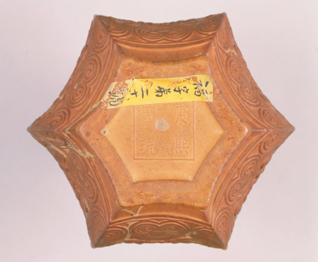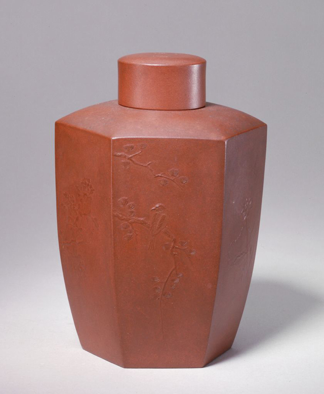 清 宜興窯紫砂蓮心銘花鳥(niǎo)六方茶葉罐