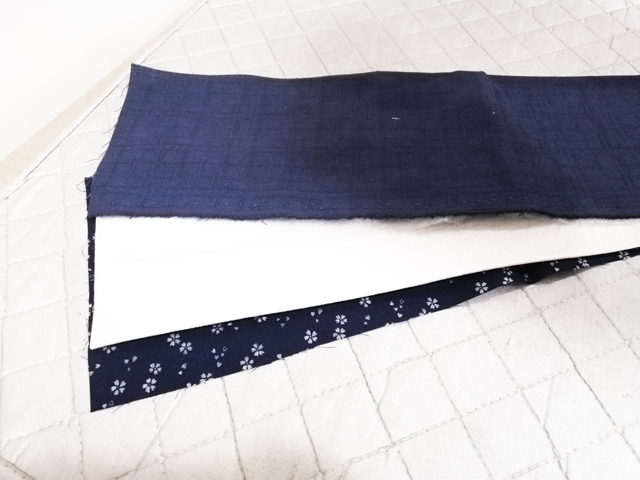 1按照表布,粘合襯,鋪棉,里布的順序進(jìn)行熨燙,使所有材料粘合在一起
