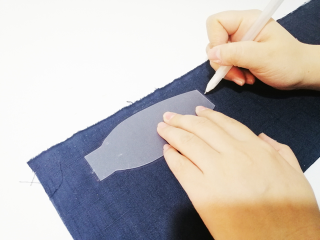 2根據(jù)版型畫(huà)在里布上,一共需要畫(huà)出6個(gè)瓶身,一個(gè)瓶底,繪畫(huà)完成后剪掉多余的布料