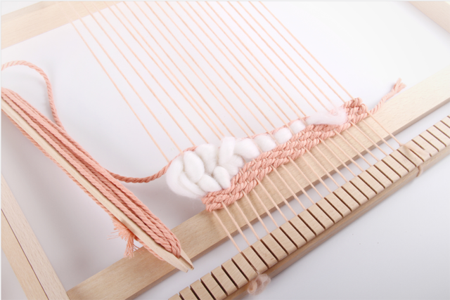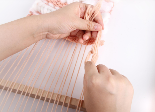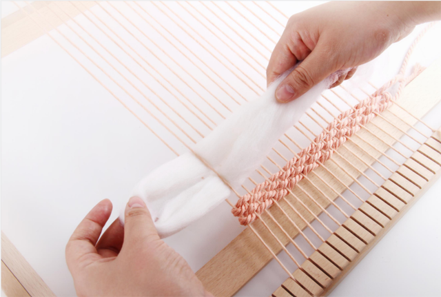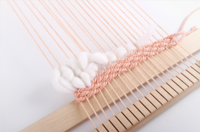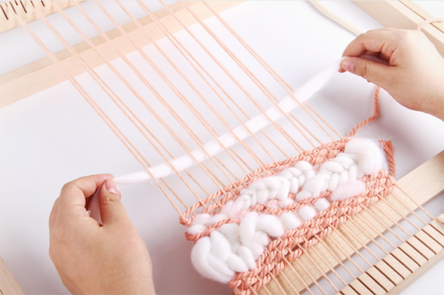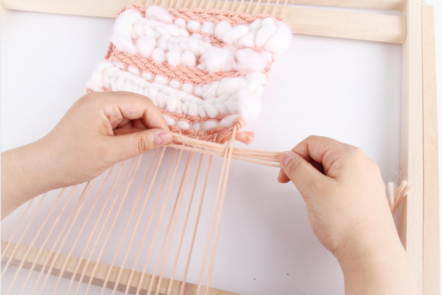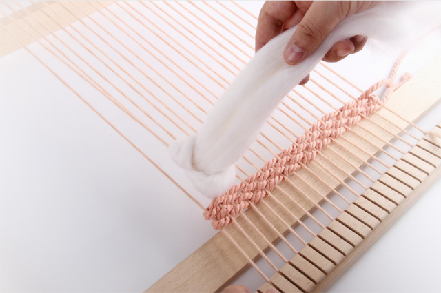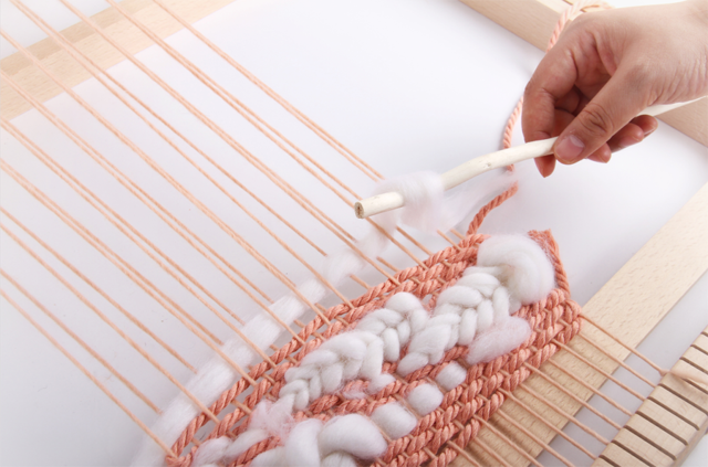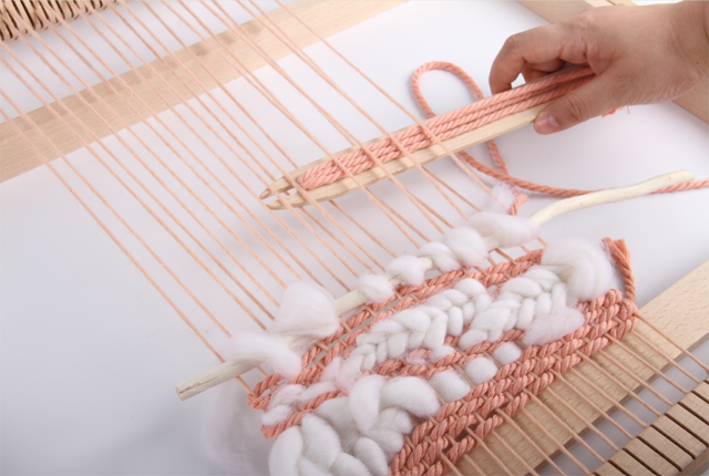 在之前的一技課程中,我們了解了織造的基本原理,運(yùn)用生活中常見的卡片、紙板等材料動手制作簡易的織機(jī),熟悉織機(jī)的開口運(yùn)作與織造技法。這期一技,我們將把麥穗紋、毛圈、流蘇的制作運(yùn)用到織造中,體會綜合運(yùn)用多種附加纖維創(chuàng)作小壁掛的樂趣。