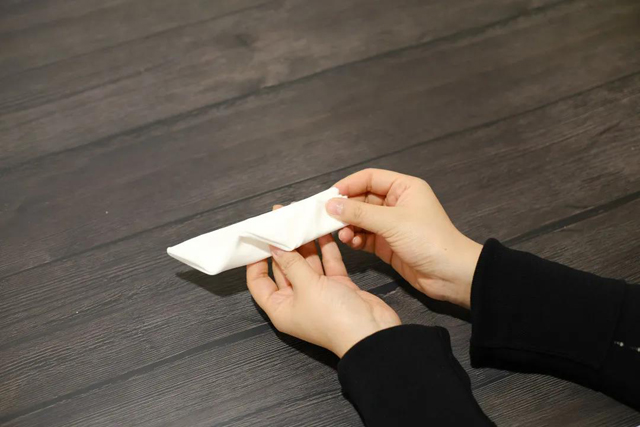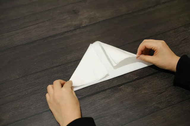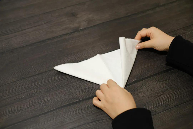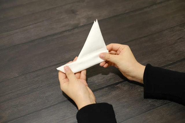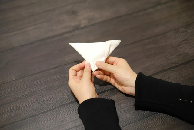·將頂邊左右兩角向底邊中點(diǎn)進(jìn)行折疊;