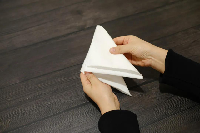 除了正方形折疊,三角形折疊與風(fēng)琴褶結(jié)合也可以變幻出網(wǎng)格狀對(duì)稱的紋樣,今天就讓我們一起解鎖新的技法,探一探其中的規(guī)律。