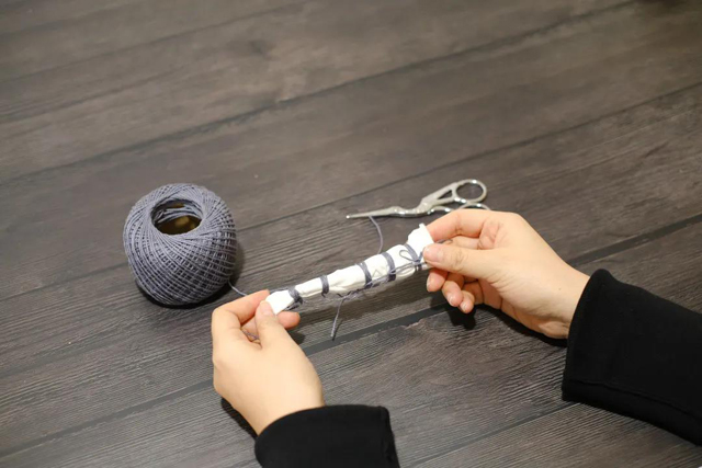 ·分段用棉線進(jìn)行捆扎。