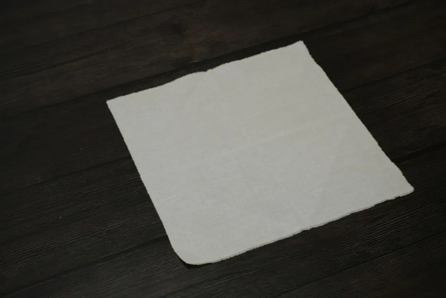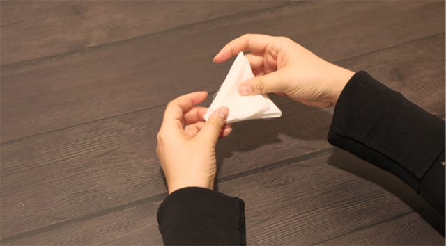 ·其他五塊面料也按同樣方法折疊,得到六個折疊好的三角形面料備用。