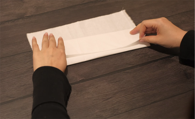 ·取第一塊面料,根據(jù)圖紙將面料進行谷峰折疊(實線表示谷折,虛線表示峰折);