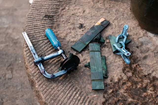 ·根據(jù)夾板形狀,選取F夾或橡皮筋對夾板進行固定