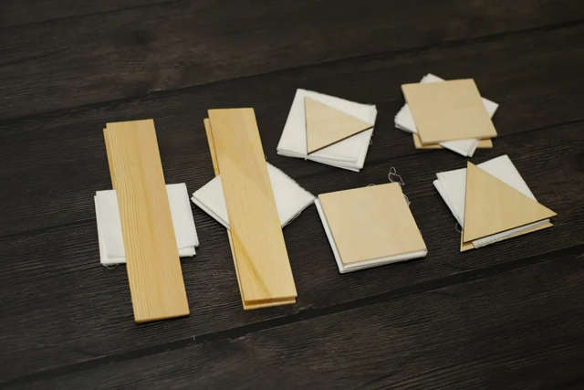 不同形狀的夾板各6組(每組含兩塊相同形狀小木板)