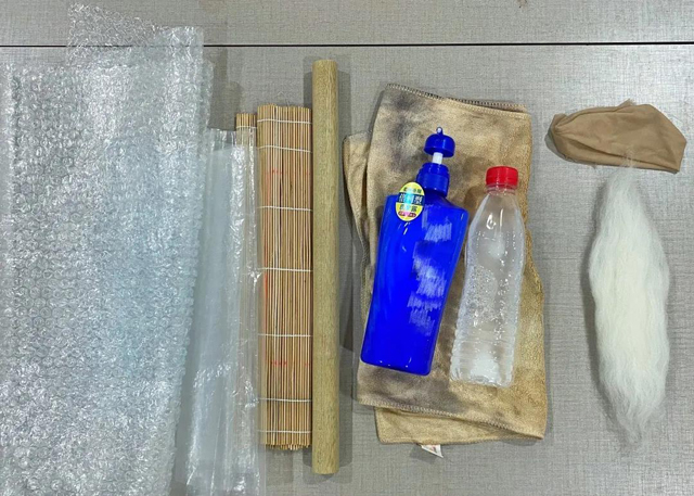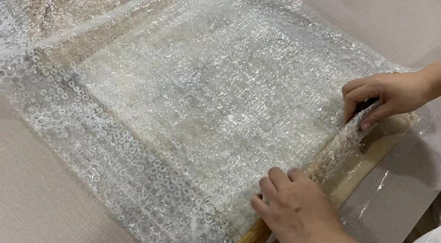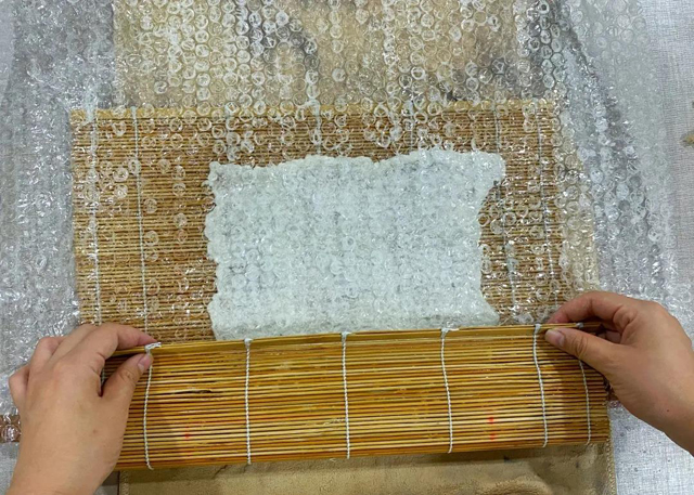 3.用竹簾進行搟制,加速氈化,每個方向搟制2分鐘