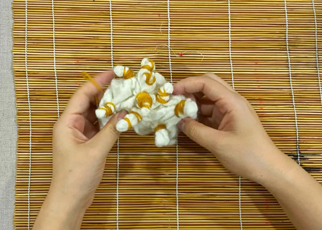 4.用橡皮筋捆扎面料