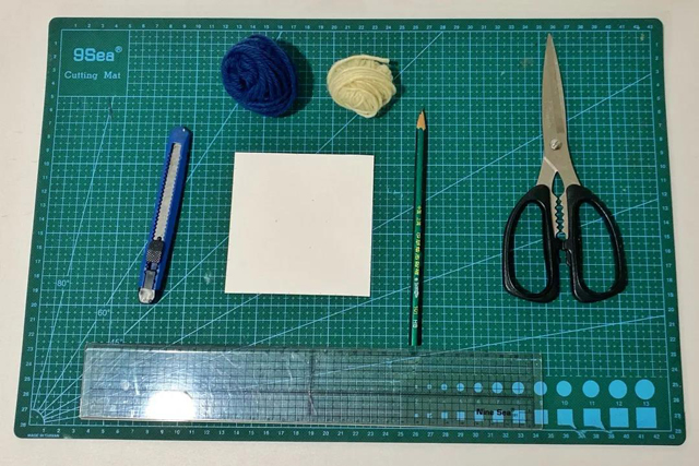 本期小編將帶領(lǐng)大家以藍(lán)、白兩色16股編繩為例,用一張卡紙來嘗試編織一款編繩。