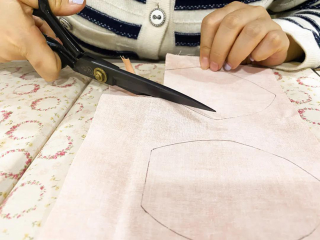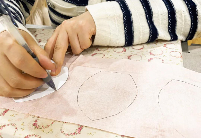 5.沿著根蒂部位面料縫合一周并抽緊。