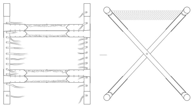 宋元之際的史學(xué)家胡三省在為 《資治通鑒 》作注時(shí)寫道:“ 交床以木交午為足,足前后皆施橫木,平其底, 使錯(cuò)之地而安;足之上端,其前后亦施橫木而平其上, 橫木列竅以穿繩條,使之可坐。足交午處復(fù)為圓,穿貫之以鐵,斂之可挾,放之可坐 ;以其足交,故曰交床”。 可見交床是腿部成交叉形狀的折疊凳 ,以繩條的穿織構(gòu)成坐面,是收放自如便于攜帶的輕型坐具。因此,今天常說的馬扎一般認(rèn)為起源于交床,有著悠久的歷史。