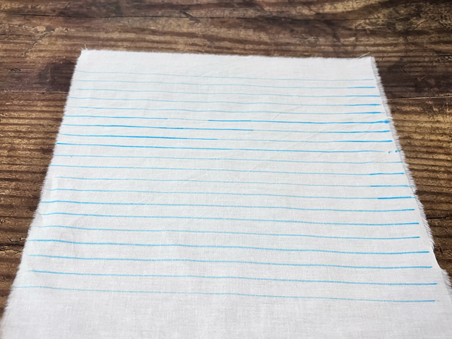 1. 取第一塊面料,用水消筆畫出間隔1cm的平行線