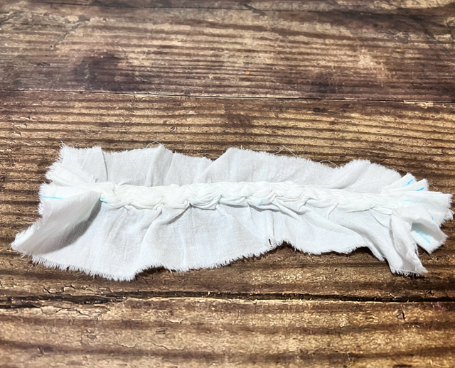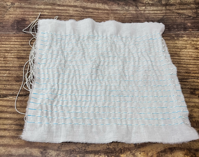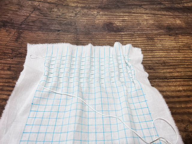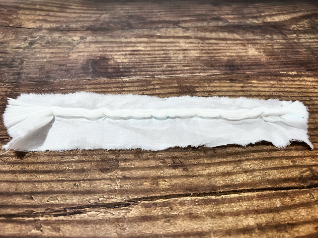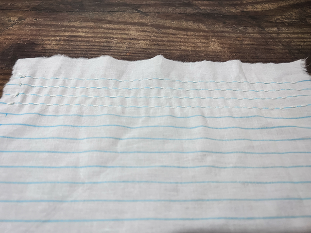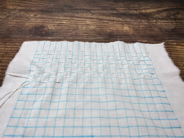 3. 給面料進(jìn)行噴水,抽緊縫線并打結(jié)
