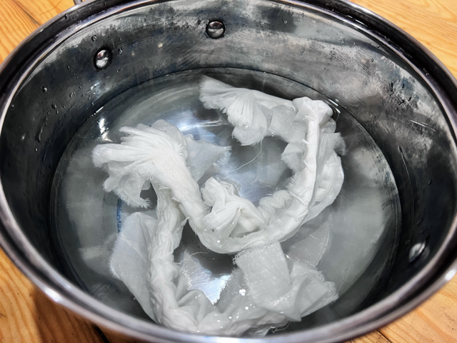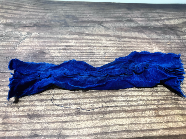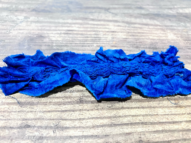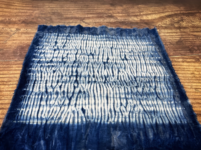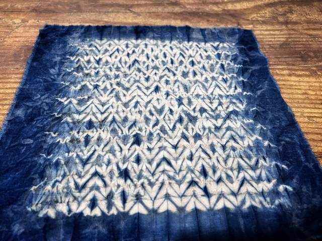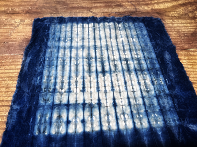 3. 清洗,將線圈剪開,鋪平晾曬,3種不同縫線的扎染小方巾就制作完成了。