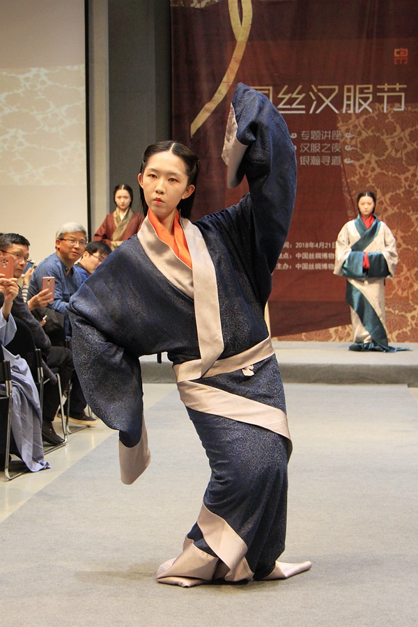 漢代風格服飾由“入時無”漢服工作室?guī)?仿自西漢馬王堆漢墓出土文物,表演者婀娜的身姿,盡顯漢時體態(tài)。