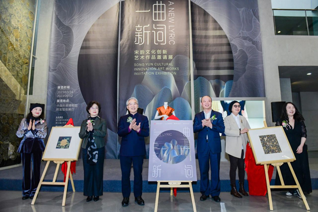 3月24日下午,“一曲新詞:宋韻文化創(chuàng)新藝術(shù)作品邀請(qǐng)展”在中國(guó)絲綢博物館隆重開(kāi)幕,浙江省文化旅游廳黨組成員、浙江省文物局局長(zhǎng)楊建武,中國(guó)工程院院士、浙江理工大學(xué)校長(zhǎng)陳文興,浙江傳媒大學(xué)黨委書(shū)記楊立平,中國(guó)絲綢博物館館長(zhǎng)季曉芬,著名時(shí)裝設(shè)計(jì)師Grace Chen,中國(guó)美術(shù)學(xué)院教授、博士生導(dǎo)師吳海燕,清華大學(xué)美術(shù)學(xué)院教授、博士生導(dǎo)師李薇,著名時(shí)裝設(shè)計(jì)師劉薇等出席開(kāi)幕式。