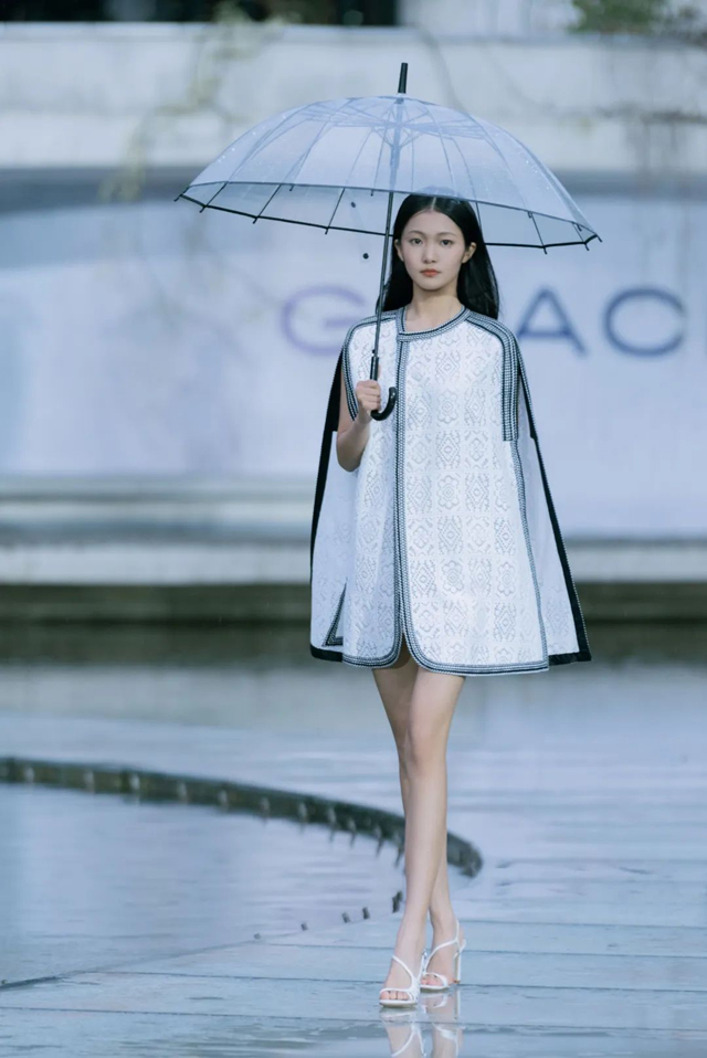 錦湖秀臺(tái),煙雨蒙蒙,另一個(gè)重磅活動(dòng)“宋詞心境” Grace Chen 2023春夏高定時(shí)裝發(fā)布大秀在浙江音樂(lè)學(xué)院劉樂(lè)師生團(tuán)隊(duì)國(guó)樂(lè)演奏中正式開(kāi)啟,為大家?guī)?lái)一個(gè)全新的“宋韻”時(shí)尚盛宴。