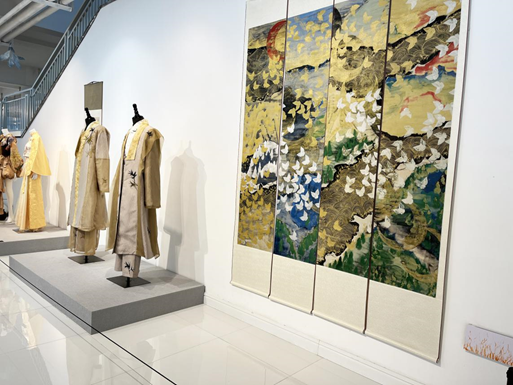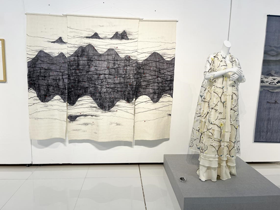 展覽分為四個單元講述,展出了120余件作品。品類包含服裝、繡品、瓷器、首飾、配飾等等,工藝有緙絲、刺繡、織錦、印染等等。作品圍繞宋韻宋詞,運用各種創(chuàng)新手法,解讀當(dāng)下的宋韻之美。其中有榮獲中國服裝設(shè)計最高獎·金頂獎的吳海燕老師、梁子老師、劉薇老師、張義超老師等作品,有當(dāng)代工藝美術(shù)大師林霞、金家虹、李加林等的作品等等。
