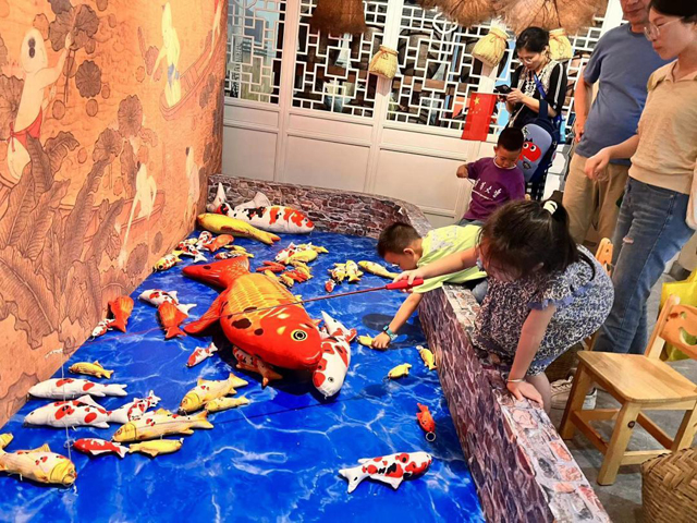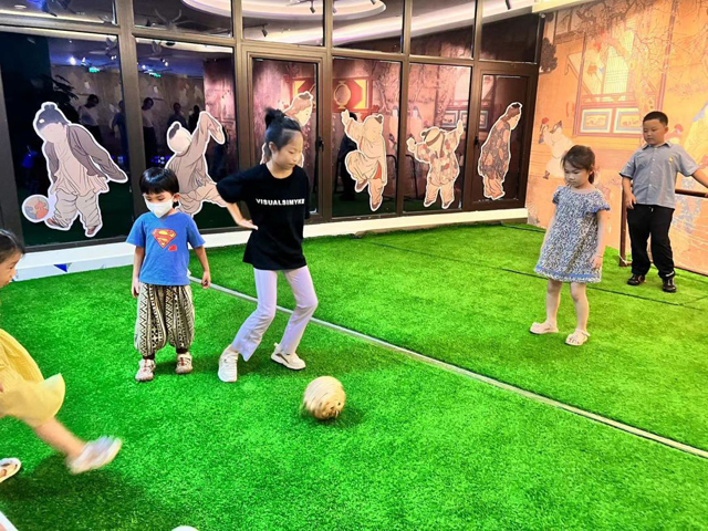 兒童館特別設(shè)置了宋畫里的運(yùn)動體驗場景,開展宋代兒童運(yùn)動項目賽事,再現(xiàn)宋代兒童喜愛的蹴鞠、投壺、射箭、下棋、推棗磨等場景,傳承宋韻競技體育文化內(nèi)涵。