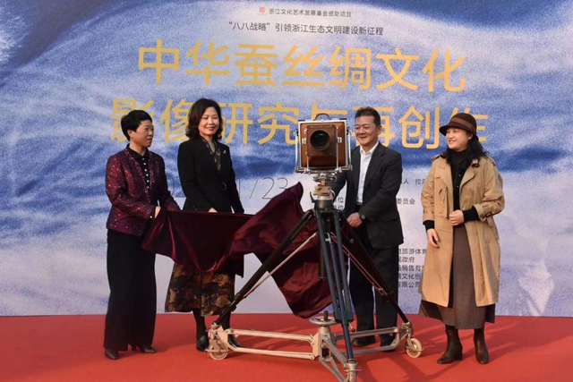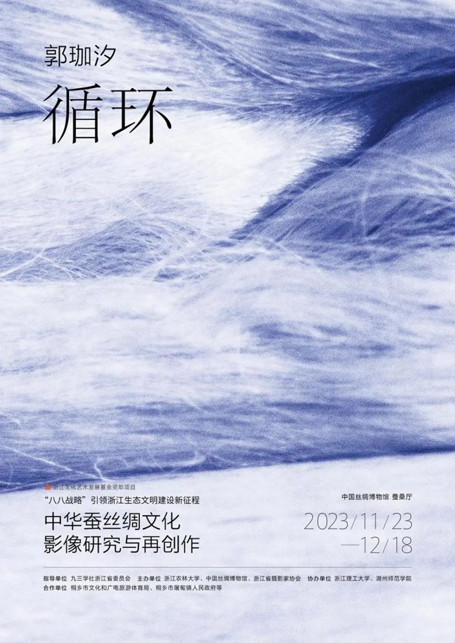 2023年11月23日下午,由九三學(xué)社浙江省委員會(huì)指導(dǎo),浙江農(nóng)林大學(xué)、中國(guó)絲綢博物館、浙江省攝影家協(xié)會(huì)共同主辦的2022-2023年度浙江文化藝術(shù)發(fā)展基金支持項(xiàng)目《“八八戰(zhàn)略”引領(lǐng)浙江生態(tài)文明建設(shè)新征程——中華蠶絲綢文化影像研究與再創(chuàng)作》成果匯報(bào)展(簡(jiǎn)稱:“中華蠶絲綢文化影像展”)在國(guó)絲開(kāi)幕。