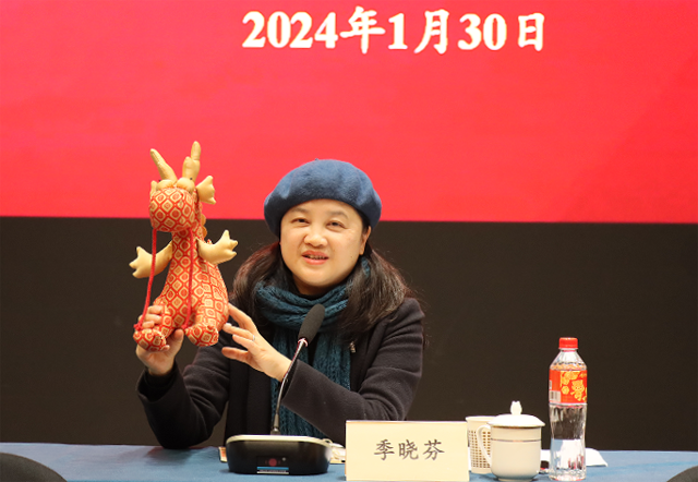 會上,季曉芬代表館領(lǐng)導班子向參會的退休老同志們表示歡迎,對全館工作人員一年來付出表示感謝,并展示了國絲新年文創(chuàng)“送福龍”,祝福大家龍年吉祥、萬事如意。