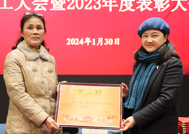 頒獎環(huán)節(jié),季曉芬為獲得先進集體的辦公室頒發(fā)榮譽獎牌。