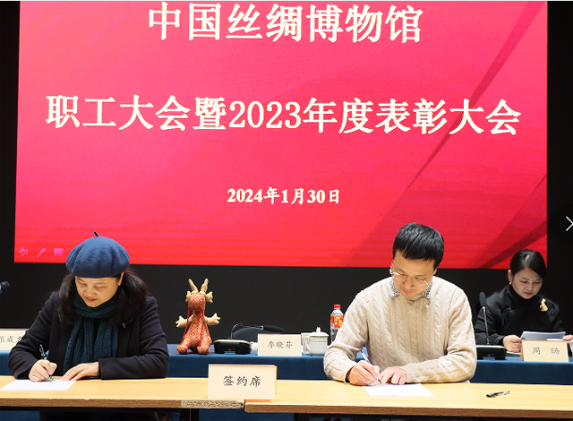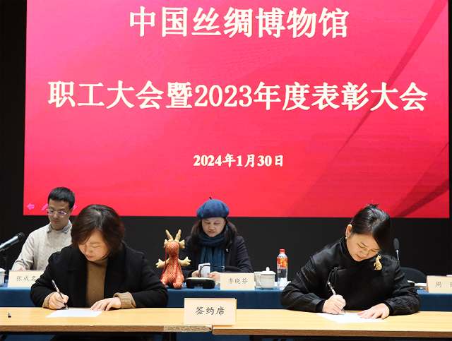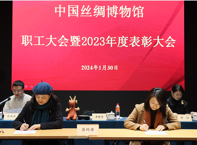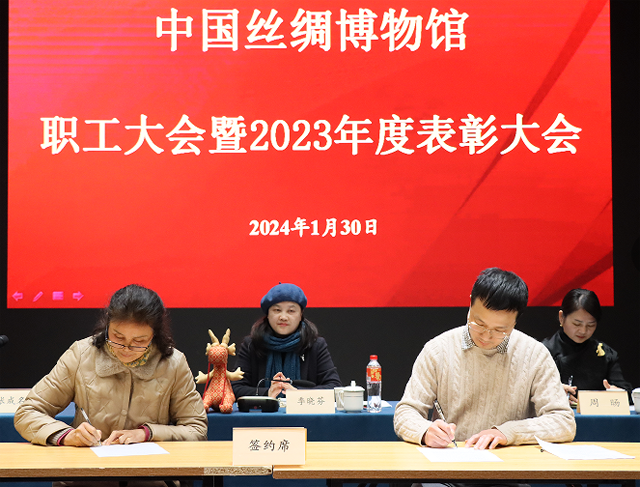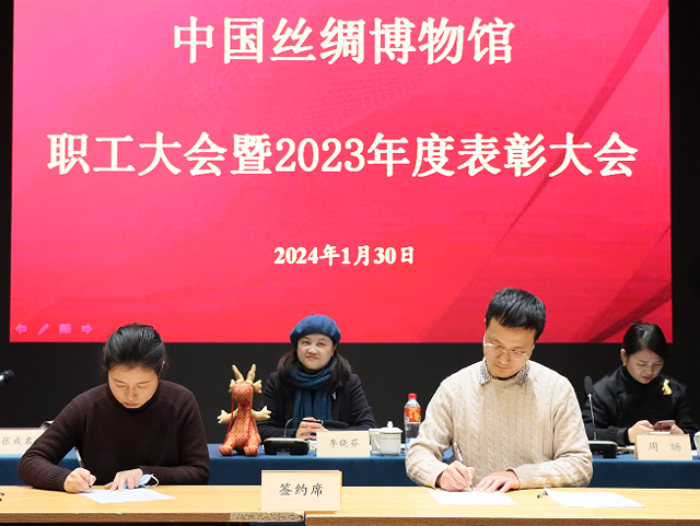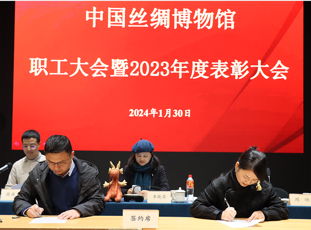 2024年1月30日下午,中國絲綢博物館舉行全館職工大會暨2023年度總結(jié)表彰會。館長季曉芬,副館長周旸、張成名出席會議。會議由張成名主持,全館員工及退休同志代表參會。