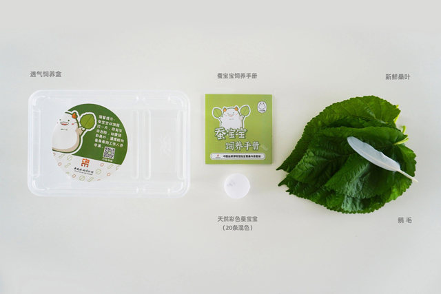 我們向所有參加活動的學生,免費發(fā)送蠶寶寶科普套裝,套裝包含20顆以上蠶卵(彩色繭蠶寶寶蠶卵)+2個蠶寶寶飼養(yǎng)盒+飼養(yǎng)手冊+全程所需的新鮮桑葉。