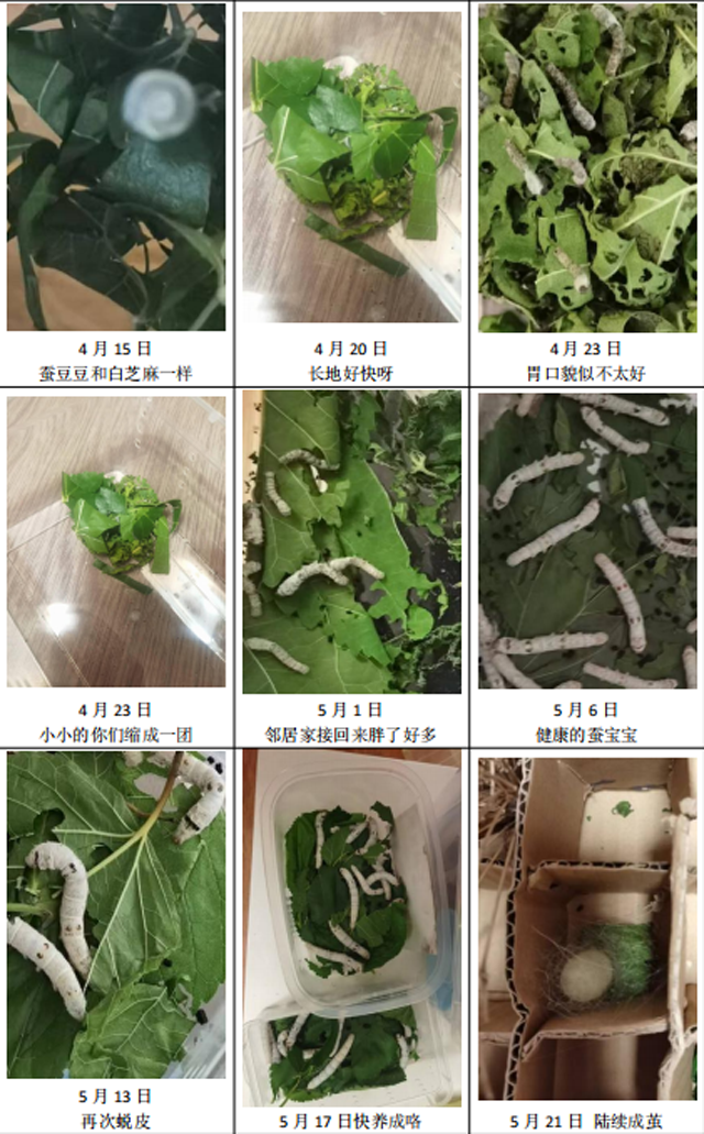 鼓勵同學們在飼養(yǎng)蠶寶寶的過程中,是培養(yǎng)小朋友觀察力,專注力,責任心的很好途徑,寫?zhàn)B蠶觀察日記,拍互動VLOG,記錄成長過程,優(yōu)秀的作品將有機會在中國絲綢博物館展出。