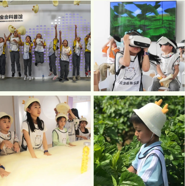 養(yǎng)蠶期間將組織前往國家商務部集約化規(guī)?;Q桑示范基地、中國絲綢博物館蠶?;亍≡讫埿Q桑樂園,進行蠶桑研學活動,化身蠶寶寶體驗其一生的經(jīng)歷,通過拓印分辨蠶蛹的公母,在500畝桑園里漫游采摘,了解桑樹的作用,品嘗美味的桑葚。