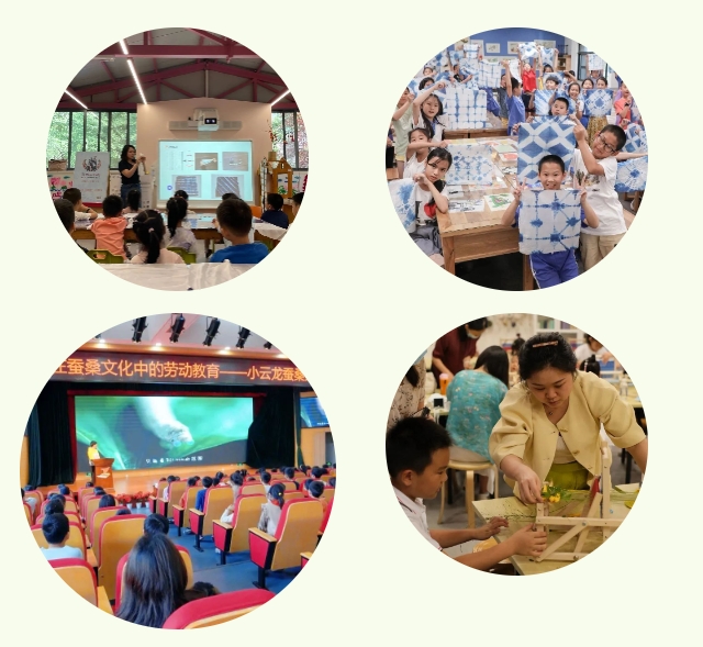 四月清明至谷雨,開展春季領養(yǎng)蠶寶寶、科普養(yǎng)蠶進校園;五月立夏至小滿,組織蠶鄉(xiāng)研學之旅、送蠶寶寶回家;六月芒種和端午,開設蠶桑民俗體驗、女紅手工體驗等活動。