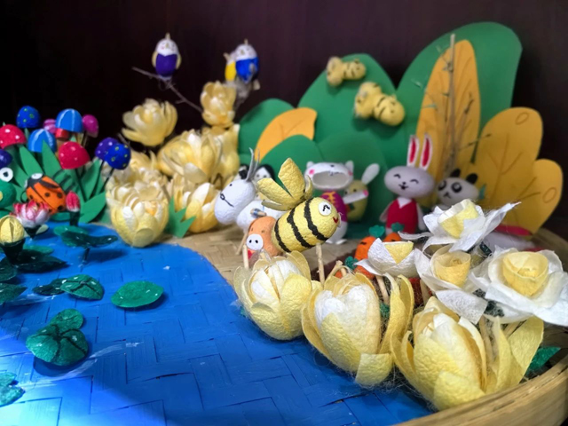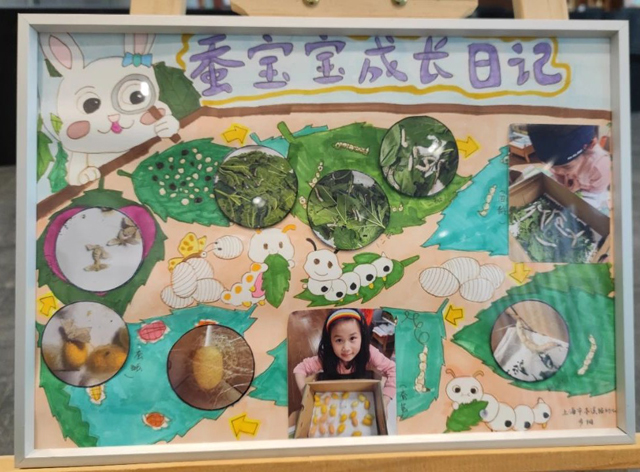 中國絲綢博物館特挑選了優(yōu)秀的養(yǎng)蠶日記和精美的蠶繭工藝品,在博物館展廳中進行展示。優(yōu)秀養(yǎng)蠶日記VLOG在活動現(xiàn)場循環(huán)播放,展示了小蠶農(nóng)們養(yǎng)蠶的點點滴滴,收獲的喜悅,動手的快樂。