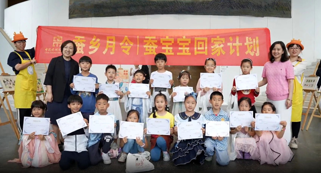 “大家來養(yǎng)蠶寶寶”活動與小云龍蠶桑樂園合作, 免費為全國各地的孩子們發(fā)放了6萬余份養(yǎng)蠶盒。小朋友們不僅親自參與喂桑葉、除蠶砂等勞動,也見證了蠶寶寶一步步蛻皮成長的生命過程。在活動尾聲,中國絲綢博物館為孩子們頒發(fā)了“中國蠶桑絲綢文化守護者”證書。