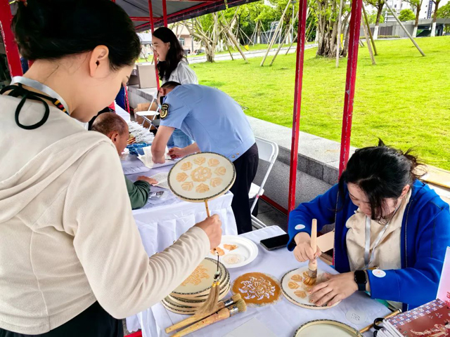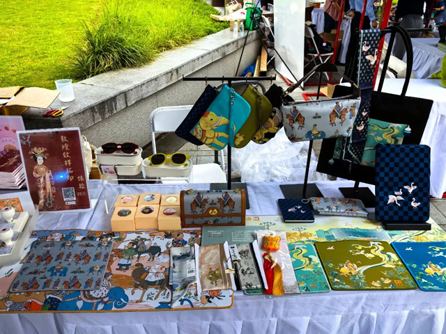 6月1日,2024年“文化和自然遺產(chǎn)日”浙江主場(寧波海曙)系列活動啟動。中國絲綢博物館精心挑選了多款絲綢主題的文創(chuàng)產(chǎn)品,例如紀(jì)念中國絲綢博物館建館30周年、“絲綢之路周”和展覽“文明大觀:絲綢之路上的敦煌”等系列文創(chuàng)產(chǎn)品,涵蓋斜挎包、絲巾、文具等,產(chǎn)品設(shè)計(jì)獨(dú)特,工藝精良。此外,國絲為現(xiàn)場市民免費(fèi)提供手工扇子,在社教工作人員指導(dǎo)下,讓大家動手體驗(yàn)印金拓印非遺技藝。