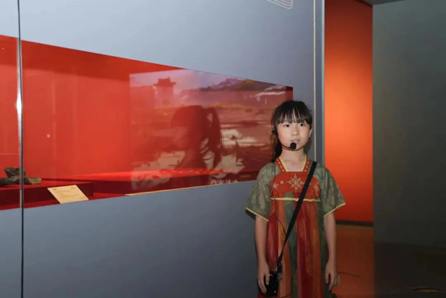 走進(jìn)展廳,5位小講解員們用“童言童語”向觀眾們介紹大唐長安的歷史文化。