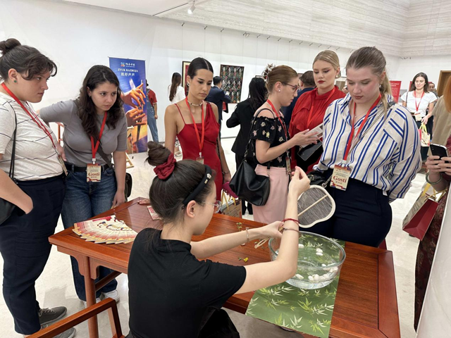 “陌桑中國—蠶桑絲織技藝展演”首場活動與展覽同期舉辦。向海外觀眾直觀呈現(xiàn)繅絲、印染、刺繡和織造等非遺技藝,互動充分、體驗感強,傳承發(fā)展中國蠶桑絲織技藝?!澳吧V袊闭寡蓓椖渴?024“絲綢之路周”期間啟動的國絲非遺海外巡展品牌,首站在貝爾格萊德呈現(xiàn)。