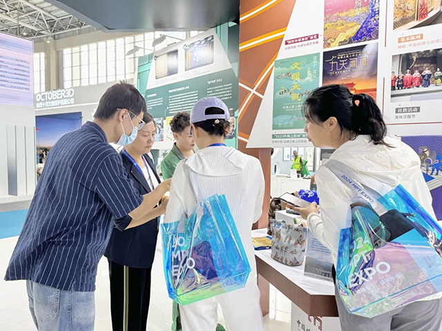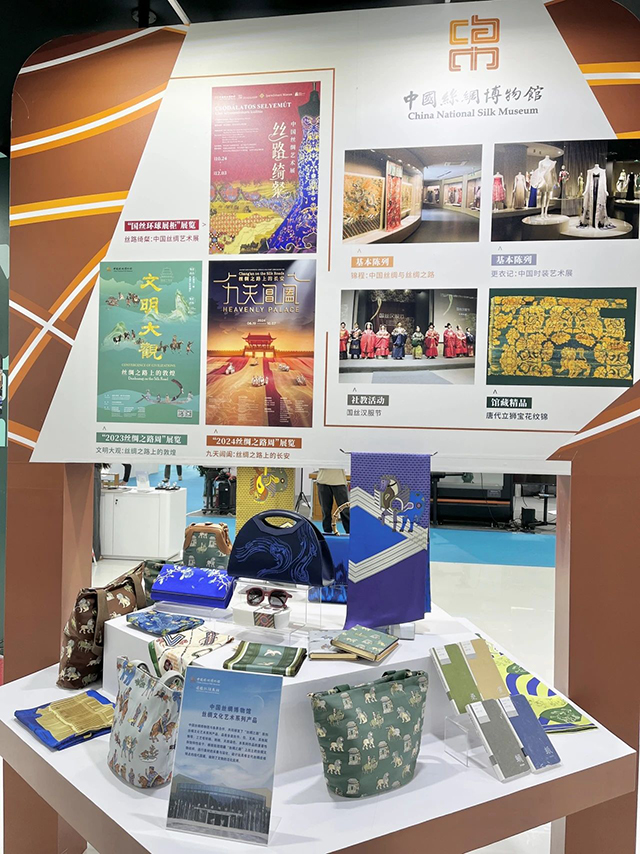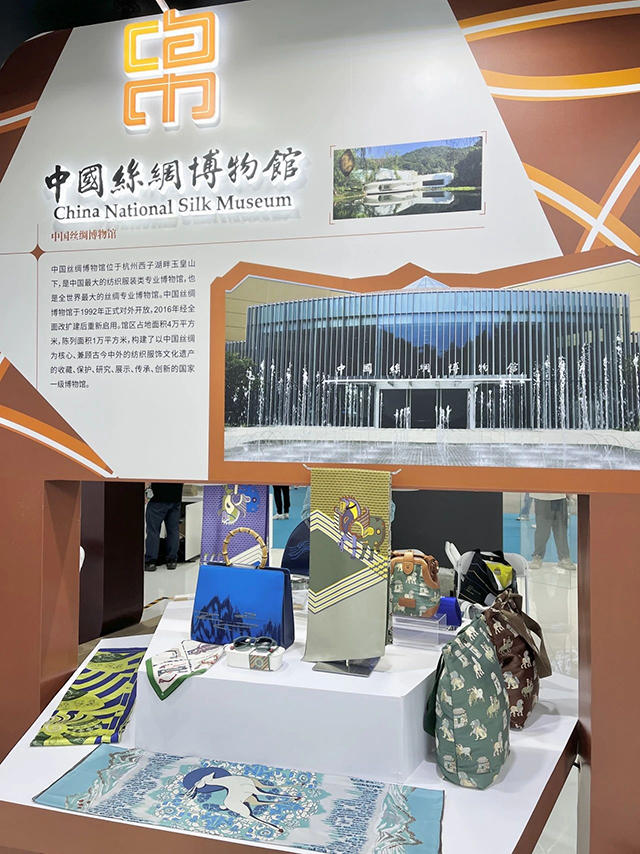 本次博博會,中國絲綢博物館帶來了與各界合作,共同研發(fā)的“絲綢之路”原創(chuàng)絲綢文化藝術(shù)系列產(chǎn)品20余款,品類涵蓋絲巾、包、文具及其他配飾,包括絲綢之路周系列文創(chuàng)產(chǎn)品、錦繡國絲三十年系列文創(chuàng)產(chǎn)品、與敦煌研究院、浙江省自然博物院推出的聯(lián)名絲巾等,深受現(xiàn)場觀眾喜愛。此次展出的文創(chuàng)產(chǎn)品,是國絲根據(jù)館藏“絲綢之路”上出土的絲綢文物紋樣,運用織錦、刺繡、天然染色等工藝,設(shè)計出的具有傳統(tǒng)絲綢特色的現(xiàn)代文創(chuàng)產(chǎn)品,將絲之技藝與今之時尚相結(jié)合,讓古代絲綢文物紋樣活起來,真正做到了古為今用。