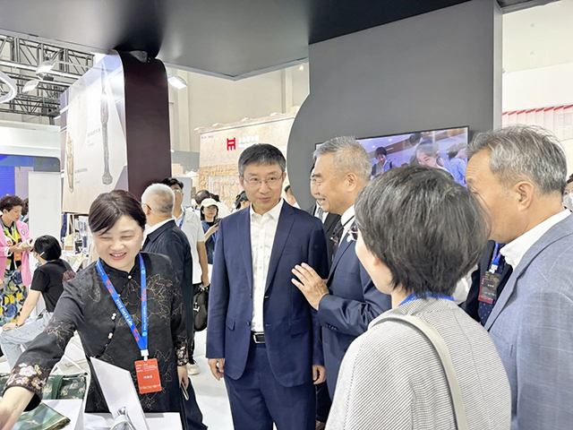 國家文物局黨組成員、副局長羅文利、中國博物館協(xié)會理事長劉曙光、浙江省文物局副局長夏丹荷等領(lǐng)導蒞臨指導,中國絲綢博物館館長季曉芬介紹展出文創(chuàng)。