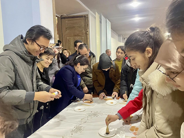 由于觀眾對(duì)展覽的熱烈反響,主辦單位特別增加三場(chǎng)現(xiàn)場(chǎng)導(dǎo)覽活動(dòng),由撒馬爾罕外國(guó)語(yǔ)學(xué)院、撒馬爾罕絲綢之路大學(xué)和撒馬爾罕國(guó)際工業(yè)大學(xué)的教師分別帶領(lǐng)學(xué)生們前來(lái)參觀展覽,讓大家深切感受絲綢之路文化遺產(chǎn)的共鳴。