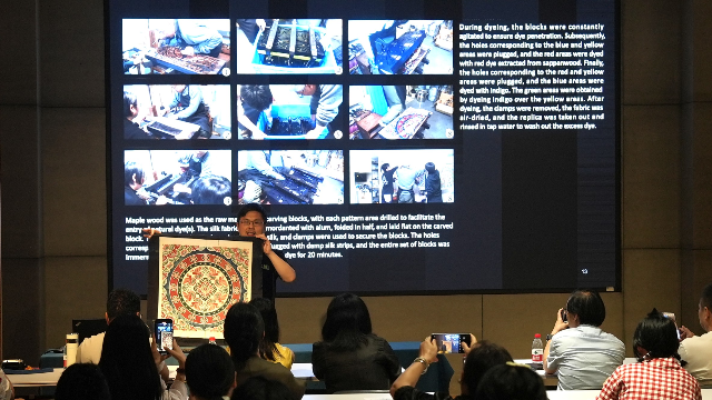 報告詳細梳理了夾纈這一中國古代極為精美復雜的印染技藝的興衰歷史及其珍貴遺存的收藏現(xiàn)狀。尤為精彩的是,分享了國絲團隊如何基于浙南地區(qū)尚存的藍夾纈技藝,結(jié)合嚴謹考證與實驗,成功破解五彩夾纈的技術(shù)密碼,復原了大英博物館收藏的唐代敦煌夾纈珍品,重現(xiàn)了這項失傳已久的“印花皇冠”的璀璨光芒。