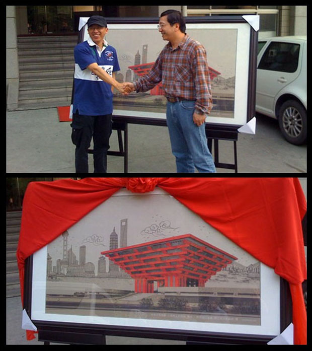 為祝賀上海世博盛會(huì),浙江人民向上海贈(zèng)送了一份特別的世博禮品:一幅以浙江的輯里絲綢為原料,精心制作而成的“湖絲杭錦《世博印象》”。