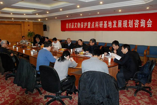 紡織品文物保護(hù)國(guó)家文物局重點(diǎn)科研基地發(fā)展規(guī)劃咨詢會(huì)于2011年1月15日北京青藍(lán)大廈召開(kāi),會(huì)議由浙江省文物局博物館處長(zhǎng)楊新平主持,來(lái)自北京文博機(jī)構(gòu)的9位知名專家參加了會(huì)議,分別是中國(guó)文化遺產(chǎn)研究院的王丹華、馬清林研究員,中國(guó)國(guó)家博物館的宋兆麟、周寶中和潘路研究員,故宮博物院的陸壽麟、苗建民研究員,中科院自然科學(xué)史研究所的華覺(jué)明研究員、清華大學(xué)美術(shù)學(xué)院的黃能馥教授。會(huì)上,中國(guó)絲綢博物館趙豐館長(zhǎng)向與會(huì)專家匯報(bào)了《紡織品文物保護(hù)國(guó)家文物局重點(diǎn)科研基地十二五規(guī)劃》(2011~2015)的編制情況和《2011年紡織品文物保護(hù)國(guó)家文物局重點(diǎn)科研基地工作要點(diǎn)》,國(guó)家文物局博物館與社會(huì)文物司(科技司)副司長(zhǎng)羅靜出席了會(huì)議并做了重要講話。